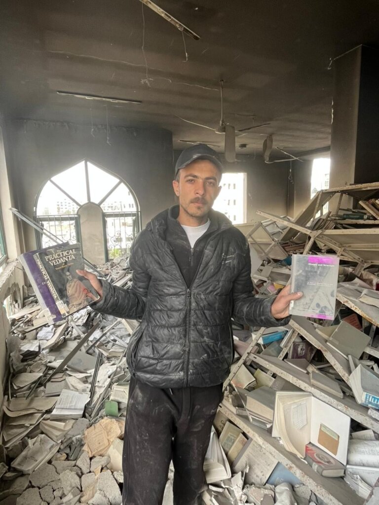 Carregou o que podia enquanto lutava para sobreviver. Em entrevista ao jornal Jordan Times, Omar relatou que viu livros da Universidade Islâmica de Gaza sendo usados como combustível para cozinhar, pois gás e lenha estavam inacessíveis.
